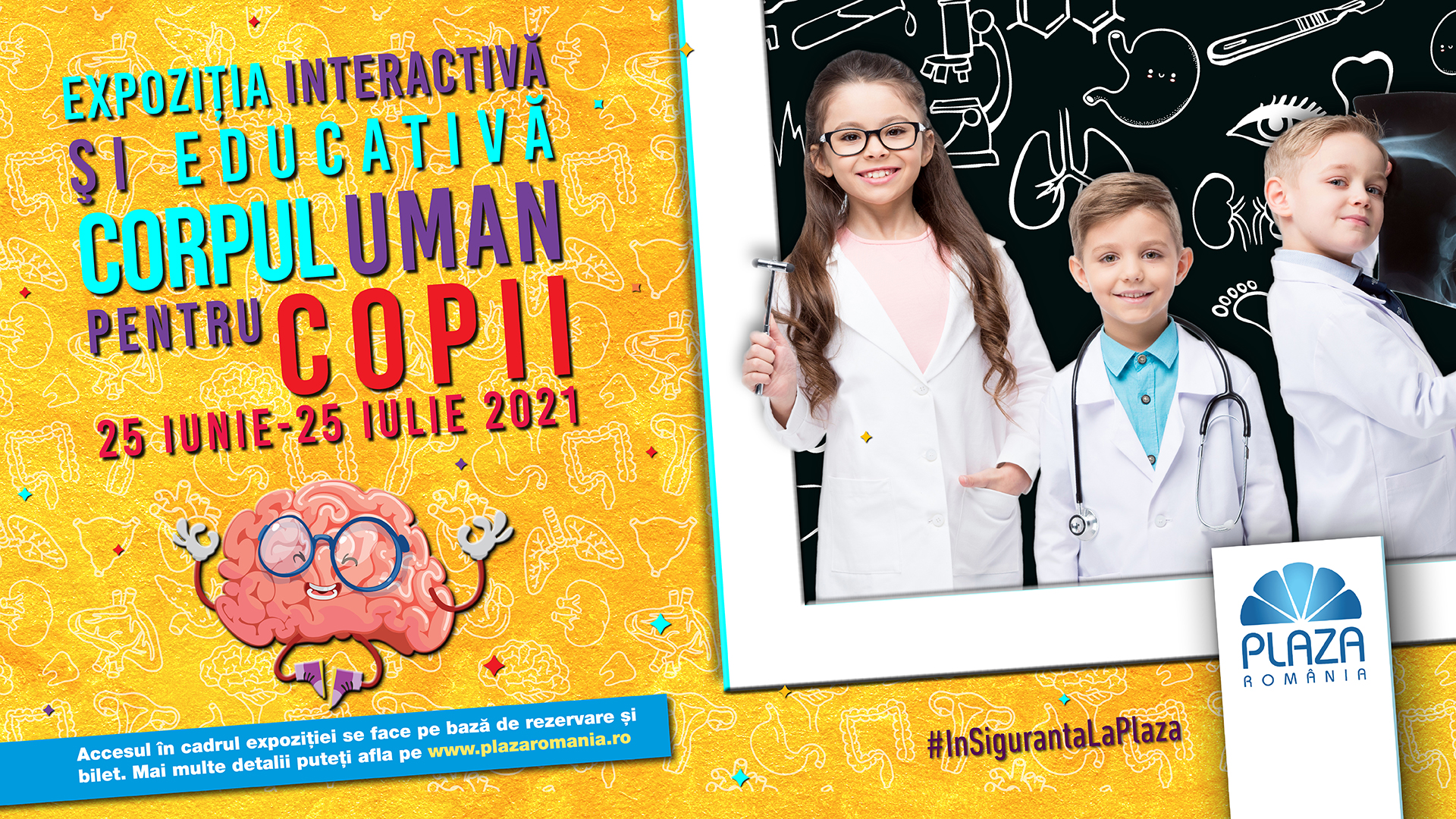 Plaza România găzduiește una dintre cele mai inedite și interesante expoziții interactive pentru cei mici, “Corpul uman pentru copii”, care are loc în perioada 25 iunie – 25 iulie, la etajul 1, zona Rotondă a centrului comercial.