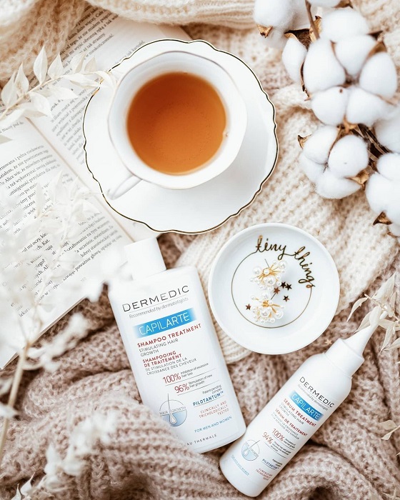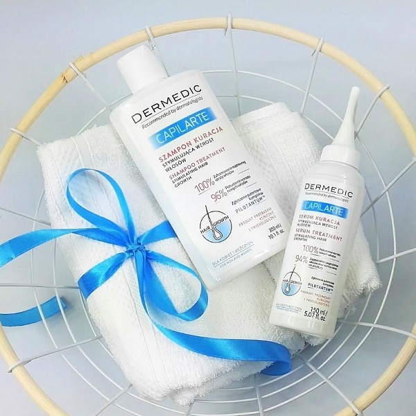 La rândul său, Serul Tratament Capilarte de la Dermedic are rolul să hrănească intensiv, să protejeze și să regenereze celulele foliculilor de păr, să crească vitalitatea acestora, stimulează micro-circulația la nivelul scalpului, îmbunătățind astfel oxigenarea matricei părului, favorizează creșterea firelor de păr noi, structurate în mod adecvat, mărește volumul de păr și reduce vizibil căderea. Mai mult, inhibă producția de dihidrotestosteron (DHT), hormon responsabil pentru scurtarea fazei de creștere a părului și micșorarea foliculilor piloși. Se aplică zilnic pe scalp o cantitate mică, care se masează ușor până se absoarbe. Se fac cure de 3 luni, cu o lună de pauză între cure. Atuurile acestei game constau în ingredientele active pe care le conține: complexul PilotantumTM, ProcapilTM, cafeină, sevă de mesteacăn, D-PanthenolTM, glicerol. Gama este hipoalergenică și este recomandată persoanelor care suferă de alopecie de diferite etiologii, inclusiv căderea părului determinată de cauze genetice sau hormonale.