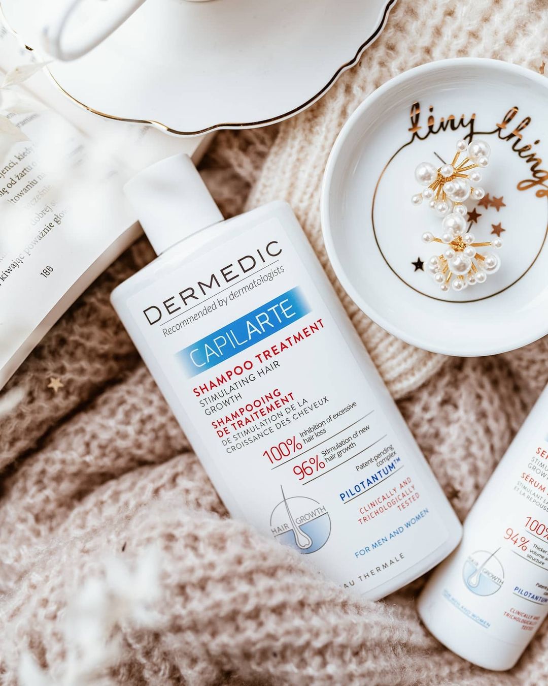 La rândul său, Serul Tratament Capilarte de la Dermedic are rolul să hrănească intensiv, să protejeze și să regenereze celulele foliculilor de păr, să crească vitalitatea acestora, stimulează micro-circulația la nivelul scalpului, îmbunătățind astfel oxigenarea matricei părului, favorizează creșterea firelor de păr noi, structurate în mod adecvat, mărește volumul de păr și reduce vizibil căderea. Mai mult, inhibă producția de dihidrotestosteron (DHT), hormon responsabil pentru scurtarea fazei de creștere a părului și micșorarea foliculilor piloși. Se aplică zilnic pe scalp o cantitate mică, care se masează ușor până se absoarbe. Se fac cure de 3 luni, cu o lună de pauză între cure. Atuurile acestei game constau în ingredientele active pe care le conține: complexul PilotantumTM, ProcapilTM, cafeină, sevă de mesteacăn, D-PanthenolTM, glicerol. Gama este hipoalergenică și este recomandată persoanelor care suferă de alopecie de diferite etiologii, inclusiv căderea părului determinată de cauze genetice sau hormonale.