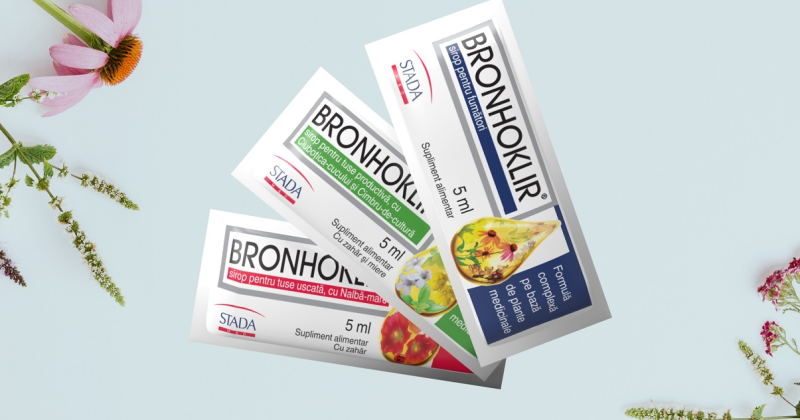 Bronhoklir este prima și unica gamă de siropuri naturale de tuse din România, sub formă de plic, pentru o dozare exactă și administrare facilă. Acest produs inovator sub formă de plic unidoză, gata dozat și ușor de administrat are avantajul de a putea fi folosit oriunde (îl iei cu tine în geantă, buzunar). Bronhoklir are la bază o formulă de extracte din plante medicinale și este prezent pe piața în 3 variante, fiecare destinată unui tip distinct de tuse – productivă, uscată și tusea fumătorilor.