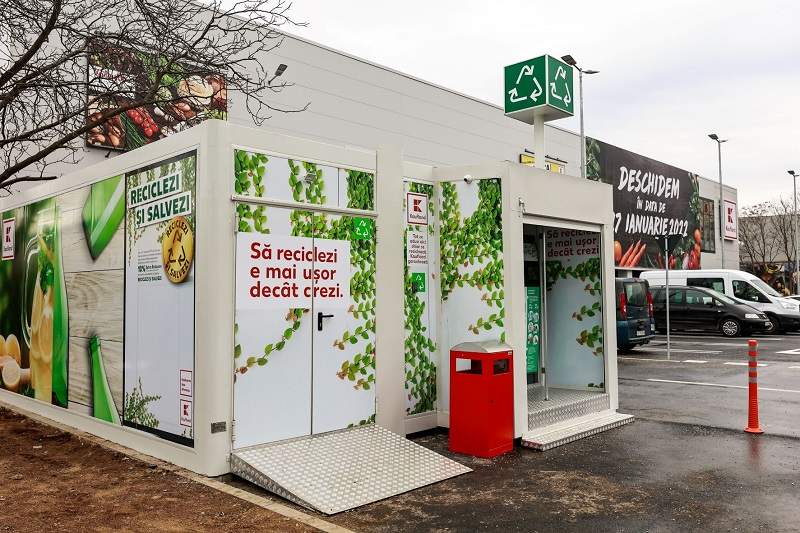 Tot în parcare, clienții vor găsi un automat de reciclare tip self-service pentru trei tipuri de ambalaje – PET-uri (cu volum de până la 3 litri), sticlă și doze de aluminiu (cu volum de până la 1 litru), iar clienții care reciclează astfel vor primi o sumă de bani sub formă de cupon de reducere ce poate fi folosit în magazin.