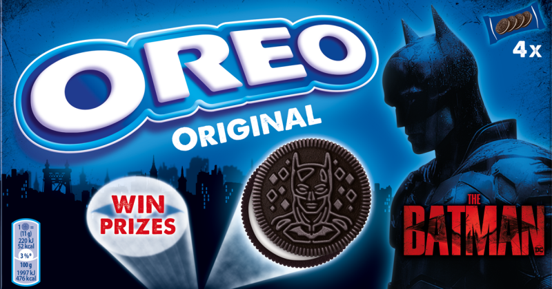 Începând cu luna ianuarie 2022, fanii vor putea cumpăra pachetele OREO în ediție limitată, inspirate din Gotham City. Pentru prima dată, clasicul biscuit OREO se va transforma în cadrul acestei colaborări cu un design de produs unic cu imaginea iconică a lui Batman. Prin scanarea codului QR de pe pachet, fanii vor putea explora portalul virtual Batcave, unde vicleanul Riddler a lăsat o serie de ghicitori care așteaptă să fie rezolvate. Cine se aventurează în Batcave poate câștiga numeroase premii, iar cei care reușesc să rezolve toate ghicitorile vor descoperi conținut suplimentar.