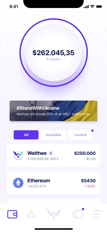 Welthee este aplicația prietenoasă la care apelezi pentru sfaturi financiare și mentorul care te ajută să înveți drumul prin piața crypto. Platforma se concentrează pe reducerea decalajului dintre lumea reală și cea crypto, oferind un portofel digital, prezentând noi proiecte crypto pentru investiții și dezvoltarea unui mod unic de a investi, cu risc variabil.