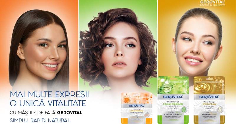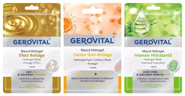 Noile măști Gerovital sunt produse inovatoare, realizate cu tehnologia DermoScience Cryo Effect, un hidrogel special care, prin conținutul optim de ingrediente active de origine naturală, ajută la menținerea și îmbunătățirea aspectului pielii. Inspirate de experiența în produse anti-îmbătrânire a brandului Gerovital, cele trei produse dedicate tenului și ochilor sunt potrivite pentru orice vârstă, pentru un plus de hidratare și un moment de răsfăț.