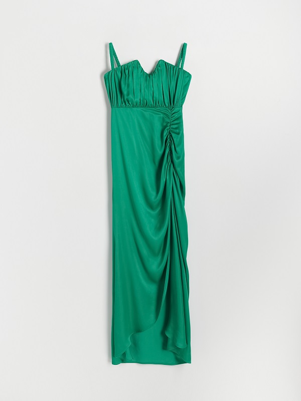 Reserved propune de asemenea și soluții mai originale – o rochie smarald cu corset ce are un croi înalt și poate fi combinată cu o pereche de colanți, sau o pereche de pantaloni albi cu croi lejer ce poate fi combinată cu o vestă tip low-cut.
