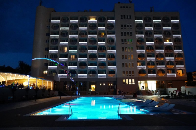 Resortul are 212 camere și apartamente, restaurant și terasă (400 locuri), lobby bar, săli de conferință și întâlniri, parcare. La capitolul agrement, oaspeții se pot relaxa la Aqua Fun, care include 3 piscine exterioare cu apă salină încălzită (o piscină pentru adulți cu o lungime de 28 m, două piscine pentru copii, 3 tobogane cu apă, bar și terasă (200 locuri). În plus, pentru copii sunt disponibile și 2 locuri de joacă.