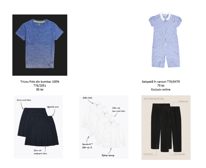 Uniforma nu trebuie să reprezinte un stres pentru copii, ci din contră, aceasta ar trebui să fie realizată astfel încât să fie adaptată nevoilor acestora. În acest sens, cămășile cu sistem Velcro, oferă o închidere ușoară, în timp ce tehnologia Expandicuff™ propune manșete elastice pentru o îmbrăcare mai ușoară și confort, ideale pentru diminețile agitate în care timpul este inamicul părinților. Pantalonii pe care Marks & Spencer îi propune pentru noul început de an școlar vin într-o gamă largă de modele, mărimi și lungimi, cu talie flexibilă și tivuri reglabile. Noutatea din acest sezon o reprezintă faptul că tivurile sunt ajustabile, astfel că, acestea se pot desface până la 3 cm în plus, ceea ce înseamnă că pot fi purtați cu ușurință pe tot parcursul anului.