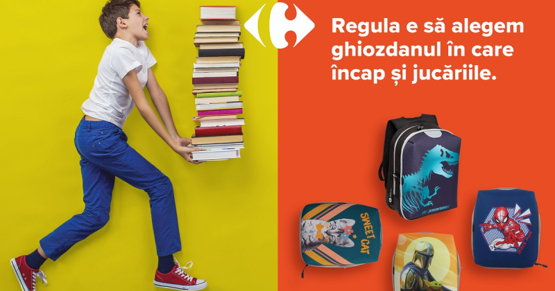 Goana după rechizite din acest an este înlocuită cu sesiuni de cumpărături avantajoase, care să le ofere copiilor tot ce au nevoie pentru începerea unei noi etape din viața lor școlară. Mici sau mari, elevii vor putea să își aleagă ghiozdane colorate, penare gata echipate, caiete, blocuri de desen și multe altele. În funcție de preferințele fiecăruia, aceștia pot opta pentru produse exclusive Carrefour, precum ghiozdanul Cameleon, personalizabil, cu 26 fețe detașabile și interschimbabile, globul pământesc Răspundel Istețel în limba română și plușuri din colecția Animapufi, aliații potriviți ai pauzelor dintre teme.