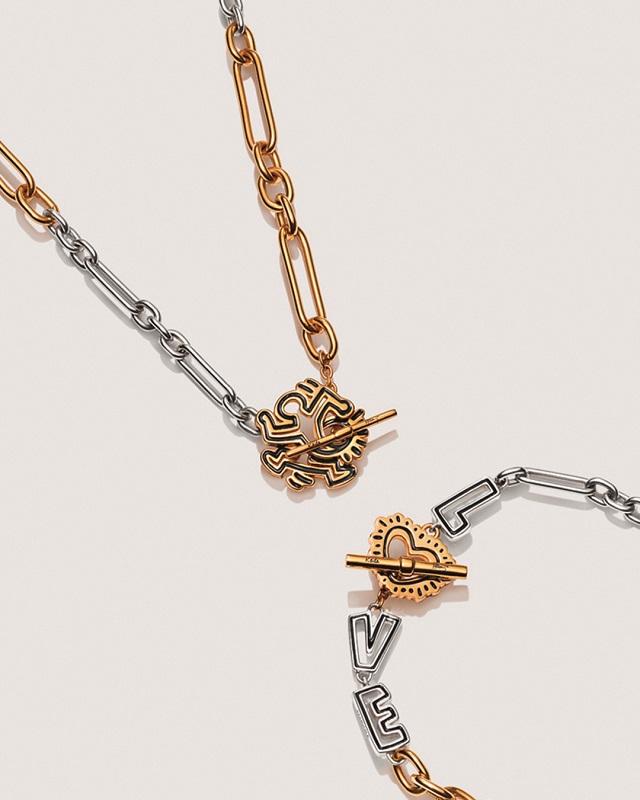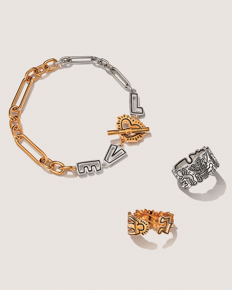 Colecția completată cu tonuri strălucitoare și metale mixte, reflectă liniile îndrăznețe și culoarea care au înfrumusețat cândva străzile New York-ului. Colecția este formată din 12 piese: 8 talismane și brățări, două inele, colier și cercei- toate inspirate de lucrările simbolice ale vizionarului, inclusiv câinele care latră, copilul înger și liniile sale îndrăznețe reprezentative.