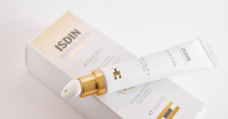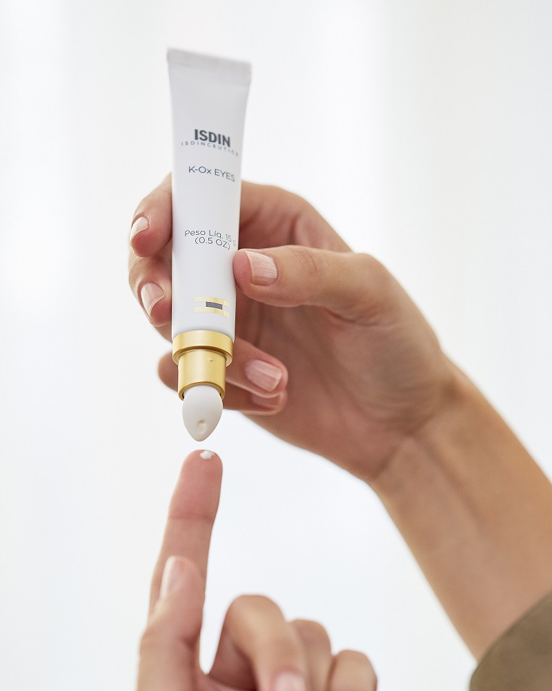 Crema de ochi ISDIN K-ox Eyes aduce fermitate, redă elasticitatea și reîntinerește vizibil zona ochilor. Atuul său este formula sa inovatoare, care conține ingrediente cheie în tratarea conturului ochilor. Acestea sunt oxidul de Vitamina K (forma activă a vitaminei), Haloxyl-ul (o combinație de matrici Pal-GHK și Pal-GQPR cu NHS + crizină), care ajută la îmbunătățirea circulației sanguine, reduce cearcănele și luminează pielea și Eyeliss, o combinație puternică de 3 ingrediente (hesperidină methyl chalcone, Dipeptide Valyl-Tryptophane și Lipopeptide PAL-GQRP), care stimulează circulația limfatică, diminuează inflamația și crește fermitatea și elasticitatea. Și, desigur, acidul Hialuronic care redă elasticitatea și hidratarea în această zonă. În plus, aplicatorul ceramic are un efect răcoritor și de drenaj, stimulează micro-circulația sanguină, iar forma lui anatomică a fost special creată pentru zona conturului ochilor.