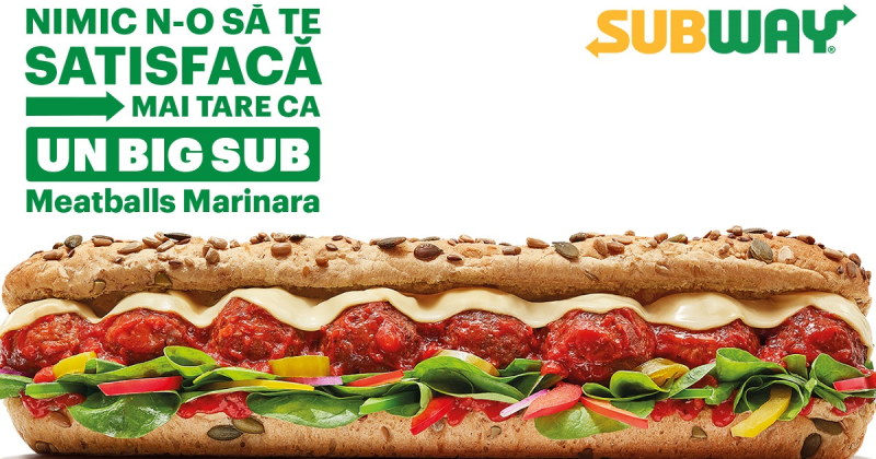 Restaurantele Subway® sunt deja cunoscute pentru Sub-urile Americane, wrap-urile și salatele personalizabile până în cele mai mici detalii. Cu toate acestea, Subway® oferă în fiecare sezon noi produse în faimosul meniu Big Sub, create în colaborare cu experți – numiți Sandwich Artists® - urmând câteva combinații bine-cunoscute și delicioase.