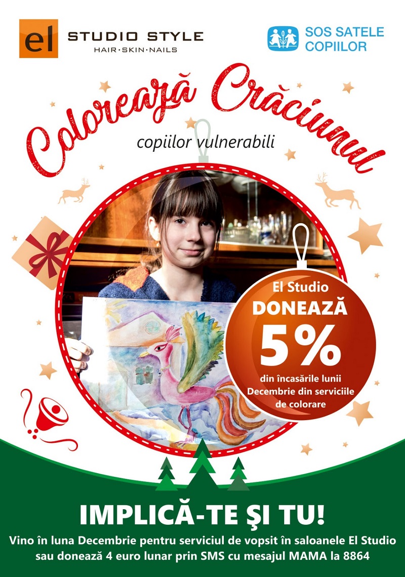 “Urăm “bine ați venit” în Familia SOS Grupului El Studio. Intervenția SOS Satele Copiilor este una pe termen lung, așa că este vital să le putem oferi copiilor, an de an, susținerea de care au nevoie. Mulțumim fiecărui partener și om de bine care oferă șanse copiilor aflați în nevoie și îi asistă, pas cu pas, spre viață independentă. Urăm tuturor sărbători cu bine, cu bunătate și liniște, așa cum ne dorim pentru fiecare copil din programele noastre și nu numai.” Diana Podaru, Director General SOS Satele Copiilor România