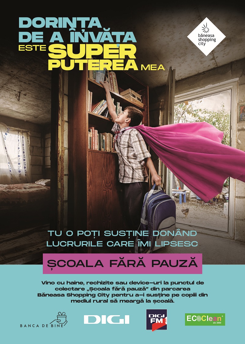 „Educația și accesul la cunoaștere sunt cei mai importanți factori în dezvoltarea copiilor și le deschid o multitudine de ferestre către lume. Din păcate, însă, în mediile dezavantajate, lipsurile materiale sunt un impediment major pentru mulți copii care își doresc să învețe. Hainele, încălțămintea sau rechizitele sunt obținute cu mari eforturi de către părinți sau lipsesc cu desăvârșire. Campania Școala fără pauză contribuie la prevenirea abandonului școlar, iar noi ne-am bucurat să contribuim la dezvoltarea acestui program, alături de echipa Băneasa Shopping City, care are convingerea că educația este cea mai bună investiție în generațiile viitoare”, adaugă Irina Manole, Head of Sustainability & CSR Oxygen.