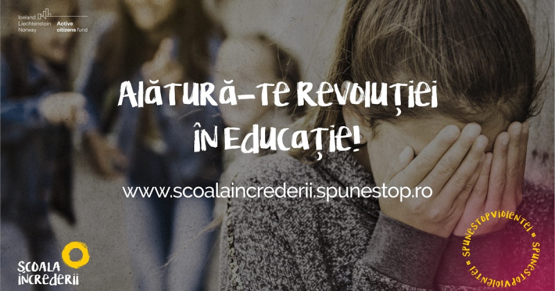 Școala Încrederii face apel la toți românii să se alăture Revoluției în Educație și să își împărtășească experiențele de agresiune, hărțuire, intimidare și violență prin care au trecut în școală. Poveștile pot fi nominale sau anonime și pot fi trimise accesând linkul: www.scoalaincrederii.spunestop.ro