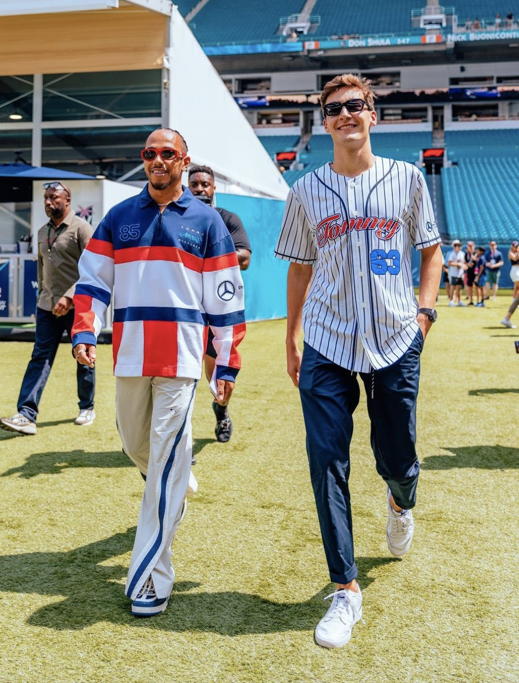 Lewis a putut fi văzut purtând tricoul Rugby din colecția capsulă Tommy x Mercedes-AMG F1 x Awake NY, în timp ce George a purtat tricoul Baseball, varianta în alb, Tommy x Mercedes-AMG F1 x Awake NY.