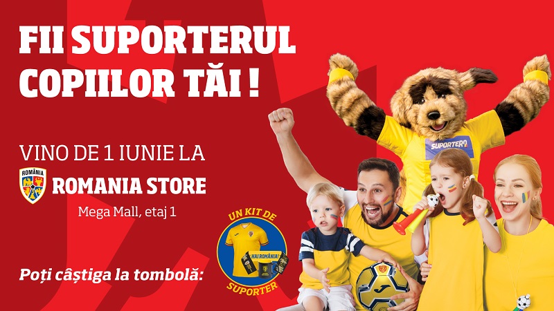 Pe 1 iunie, de la ora 17.00 până la 19.00, copiii și părinții sunt așteptați în Romania Store, la etajul 1, să înscrie goluri alături de RONNY, mascota care susține Echipa Națională.