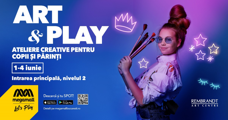 Între 1 și 4 iunie, copiii și adulții sunt așteptați la atelierele creative organizate de Rembrandt Art School, la nivelul 2, intrarea principală. Participarea este gratuită.