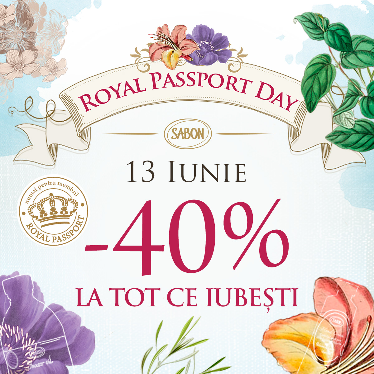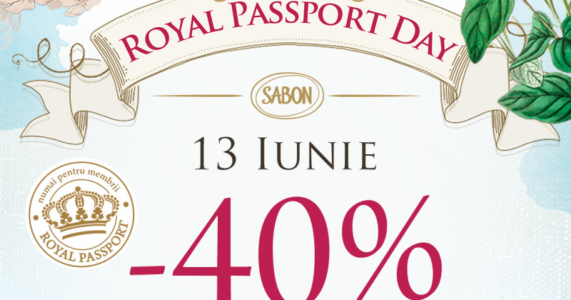 - Royal Passport Day e ziua cea mai iubită de către fanii Sabon posesori de Royal Passport Card, pentru că reducerea aplicată oricărei achiziții este de 40%!