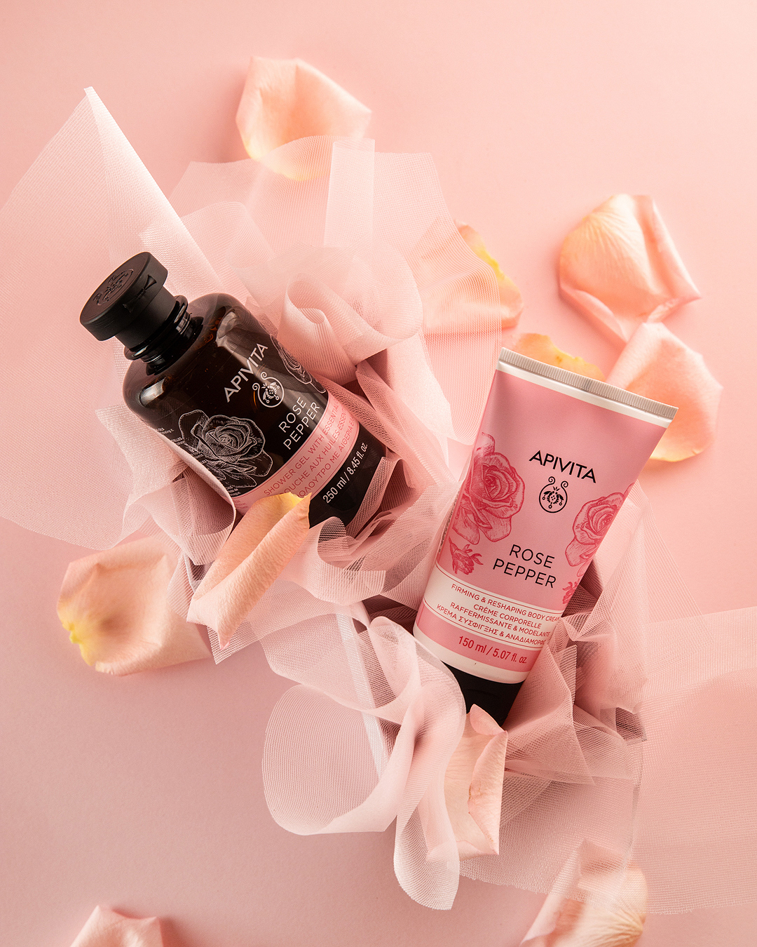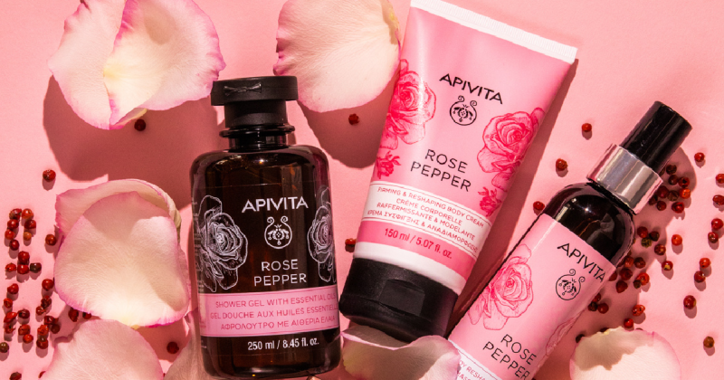 Acțiune fermă și lipolitică, datorită piperului roz și extractului de anghinare. Curățare ușoară, cu respectarea fiziologiei pielii, datorită extractului de saponaria și a surfactanților naturali.Gama completă ROSE PEPPER este produsă în fabrica bioclimatică APIVITA din Markopoulo, Attica, Grecia. Este disponibilă în farmacii și în punctele de lucru selecționate.