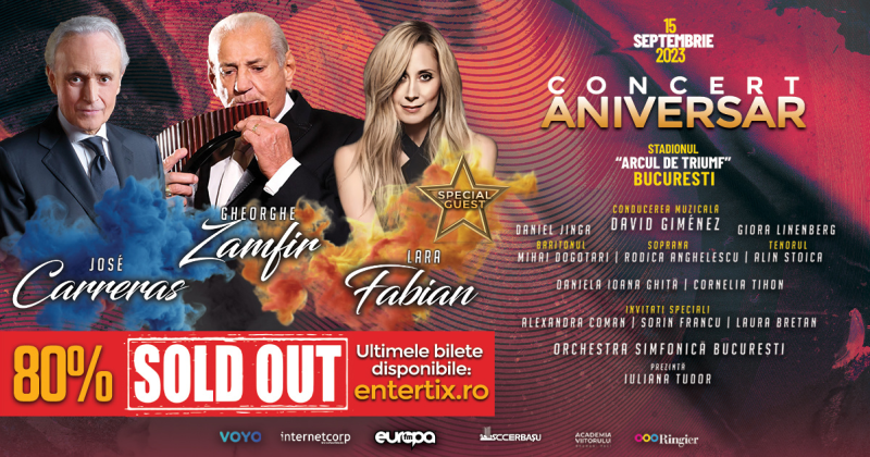 Pe 15 Septembrie, pe Stadionul Arcul de Triumf din București, vor urca pe scenă, alături de Gheorghe Zamfir, alți doi artiști de calibru internațional: José Carreras, unul dintre cei mai proeminenți tenori ai generației sale, și Lara Fabian, cea mai bine vândută artistă de origine belgiană din toate timpurile. Orchestra Simfonică București, sub bagheta alternativă a dirijorilor David Giménez, Daniel Jinga și Giora Linenberg, va oferi un acompaniament desăvârșit soliștilor.