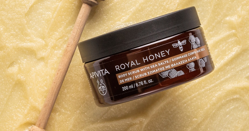 Atuul acestuia? Conține 97% ingrediente naturale, printre care săruri naturale, extract de propolis care susține acțiunea sa de curățare∙ Exfoliantul de corp Royal Honey de la APIVITA hrănește pielea și o lasă extrem de moale și de catifelată grație bogatului său conținut în miere de cimbru, unt de cacao, ulei de migdale si ulei de măsline. Miroase senzațional, deoarece mai conține extract organic de lavandă din APIGEA, dar și uleiuri esențiale organice de portocal și trandafir.