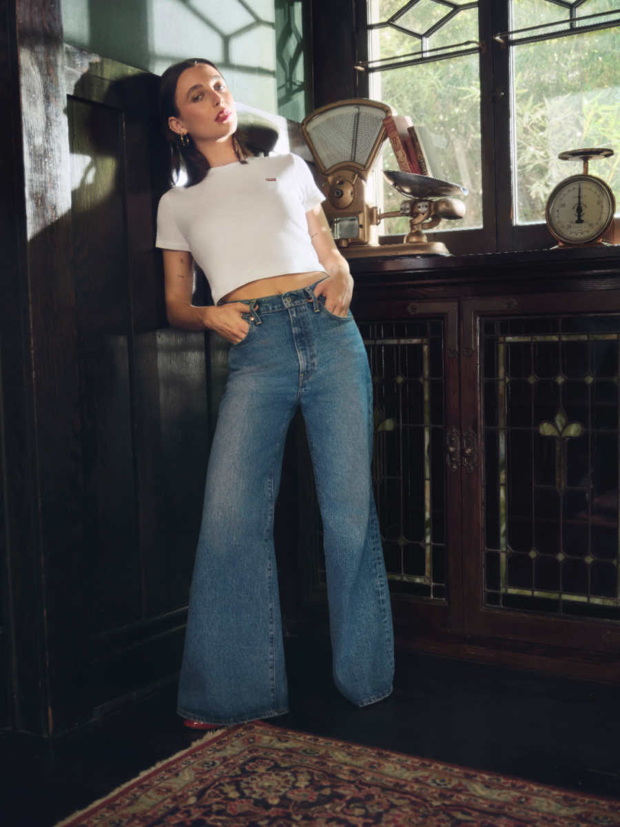 Campania It’s Giving Season introduce un nou model iubit de Emma, și anume, Ribcage Bells. O pereche de pantaloni cu talie înaltă și un fit al piciorului wide, în stil vintage. Aceștia sunt o reinterpretare a unui model clasic, regăsit în moștenirea oferită de arhivele Levi's din anii '70. În plus, modelul este disponibil într-o gamă variată de culori și materiale, inclusiv un negru intens, din catifea. Indiferent dacă alegi să-ți asortezi perechea de Ribcage Bells cu un pulover supradimensionat sau cu un tricou alb, nu există nici o modalitate greșită de a stiliza acest articol.