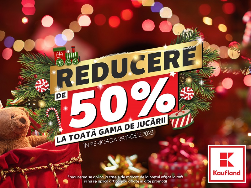 Prin această inițiativă, Kaufland sprijină părinții în alegerea cadourilor ideale pentru cei mici, având grijă de bugetul familiei. Timp de o săptămână, clienții beneficiază de accesul la o gamă variată de jucării pentru toate vârstele, disponibile la jumătate de preț. Oferta include păpuși, mașinuțe, trenulețe, jocuri educative si de constructie, biciclete fără pedale, puzzle-uri, instrumente muzicale, jucării de pluș și multe altele. Reducerile se aplică direct la casele de marcat, pornind de la prețul afișat la raft.