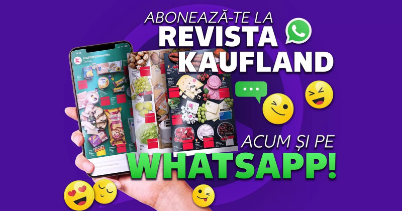 Pe canalul de WhatsApp, clienții vor avea posibilitatea să primească în fiecare duminică pliantul cu ofertele săptămânale de la magazinul Kaufland din apropierea locuinței. Broșura include detalii despre reducerile aplicate produselor marcă proprie, precum și alte promoții disponibile în magazine.