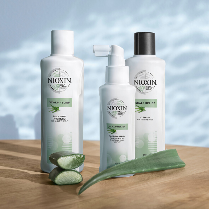 Gama Scalp Relief de la Nioxin se concentrează pe tratarea problemelor specifice ale scalpului sensibil, oferind o îngrijire delicată și eficientă. Este o gama formată din 3 sisteme testate dermatologic, formulată cu ingrediente blânde, dar puternice. Ea a fost concepută pentru a calma și pentru a hidrata scalpul, reducând senzația de mâncărime și disconfort, dar și pentru îngroșarea instantă a părului, Nioxin fiind un brand professional, lider în prevenirea subțierii acestuia.