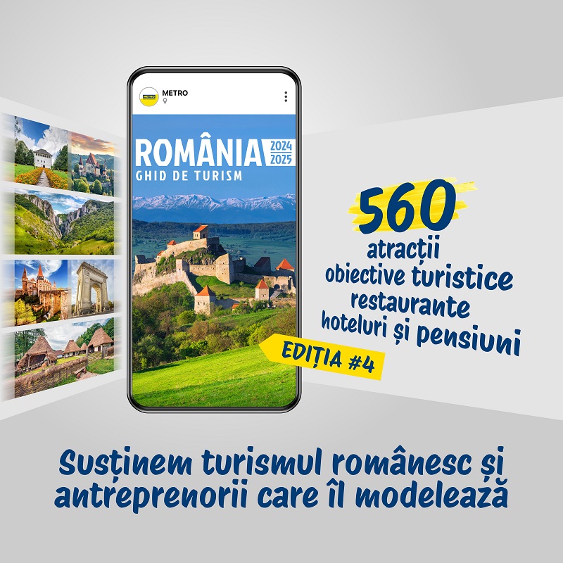 „Proiectul „România: Ghidul de Turism” s-a născut acum patru ani, ca un angajament ferm pentru a sprijini sectorul HoReCa, care a traversat momente dificile în timpul pandemiei. Acest ghid captează esența și spiritul antreprenorial al României, punând în lumină antreprenorii noștri dedicați din turism. La METRO, nu ne considerăm doar furnizori, ci parteneri ai acestor oameni îndrăzneți, care își asumă riscuri și muncesc cu pasiune zi de zi. Fiecare recomandare de cazare sau restaurant din ghidul nostru reprezintă o poveste de succes, un vis transformat în realitate, iar noi suntem mândri să fim alături de clienții noștri în această călătorie. Rolul nostru transcende simpla afacere - ne angajăm să fim susținători ai viziunii și ambiției antreprenorilor locali, facilitând conexiuni care îmbogățesc și diversifică experiența turistică românească, iar acest ghid reprezintă doar o mică parte din inițiativele pe care le avem în plan pentru a fi cât mai aproape de industria ospitalității”, afirmă Adrian Ariciu, CEO la METRO România.