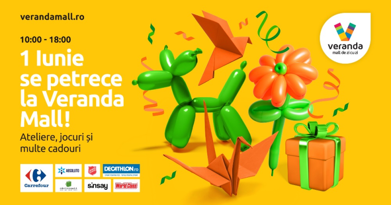 Iată programul complet de concursuri și activități pregătit de Veranda Mall pentru a sărbători Ziua Copilului. Evenimentele vor avea loc sâmbătă, 1 iunie, atât în interiorul, cât și în exteriorul mallului, între orele 10:00 și 18:00, iar participarea este gratuită.
