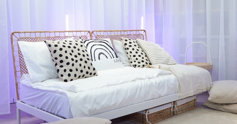 Cu cât este mai ordonată camera, cu atât este mai probabil să dormi bine. Culorile sunt importante și influențează starea de spirit în moduri diferite, inclusiv modul în care percepem un spațiu. Cele mai relaxante culori recomandate pentru dormitor sunt albastru, galben și verde – dar ești liber(ă) să o alegi pe cea care îți place.