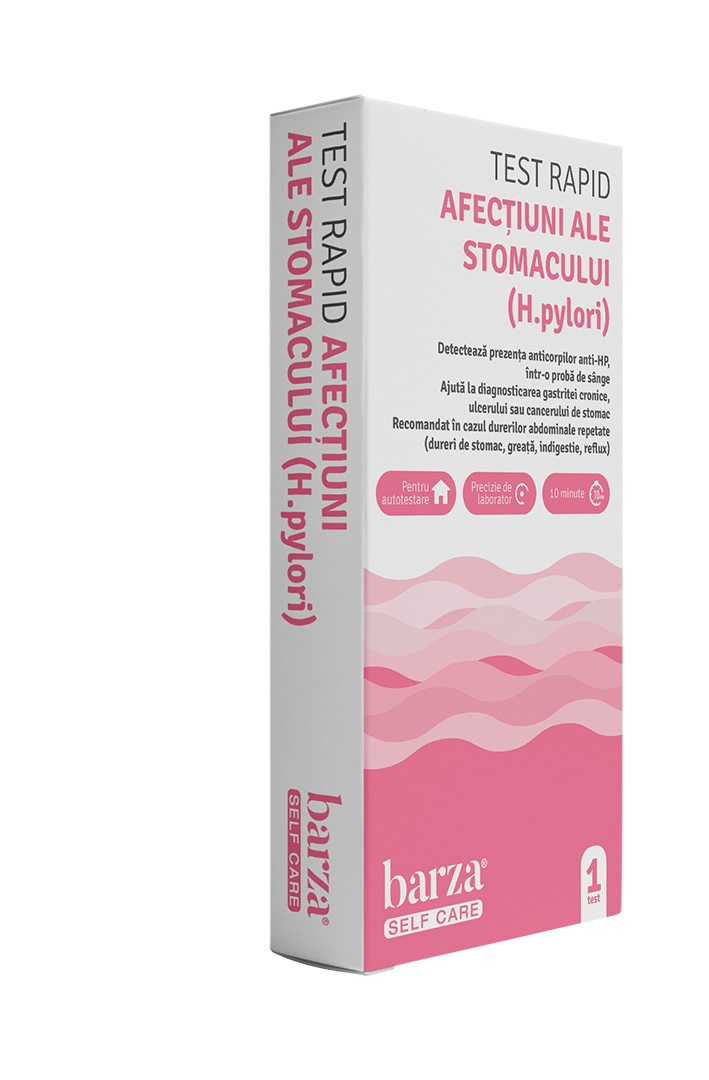 Partea bună este că poate fi descoperită într-un timp foarte scurt, chiar în confortul propriei case cu ajutorul testului rapid pentru afecțiuni ale stomacului de la BARZA Self Care.