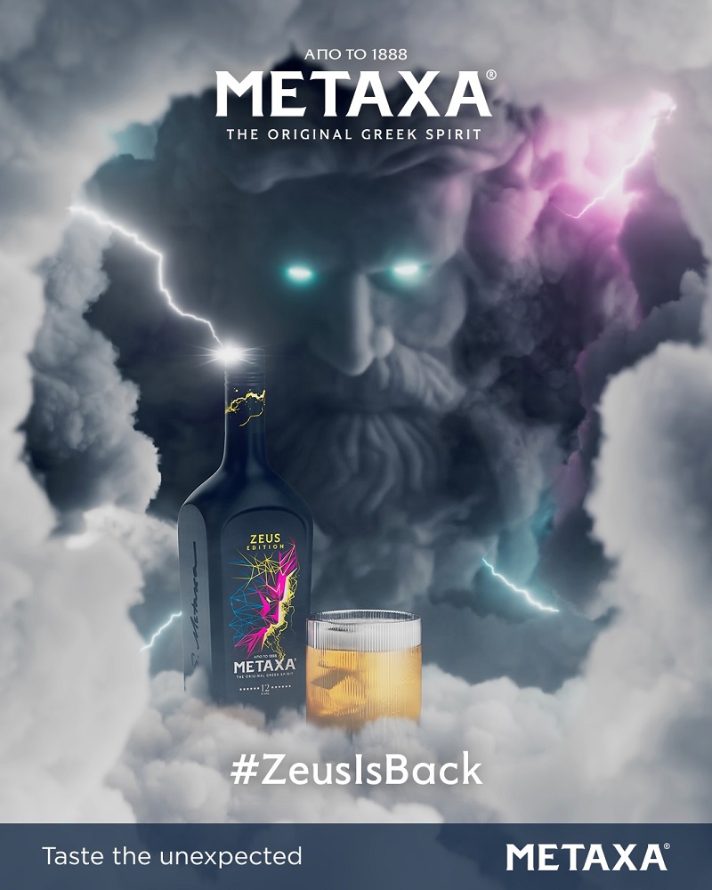 Pentru această ediție limitată care lovește precum unul dintre fulgerele lui Zeus, Sticla METAXA 12 Stele a primit un design cu adevărat surprinzător, în timp ce conținutul ei și-a păstrat caracterul original. O băutură alcoolică cu un gust matur, bogat și rafinat, produsă din vinuri aromate obținute din struguri Muscat de pe insula Samos, distilate din vinuri maturate și plante mediteraneene. Prin modernizarea designului sticlei, dar păstrarea gustului autentic al METAXA 12 Stele: Ediția Zeus aduce un omagiu originilor sale grecești și face produsul mai atractiv pentru noile generații – și readucându-l astfel la viață pe regele zeilor.