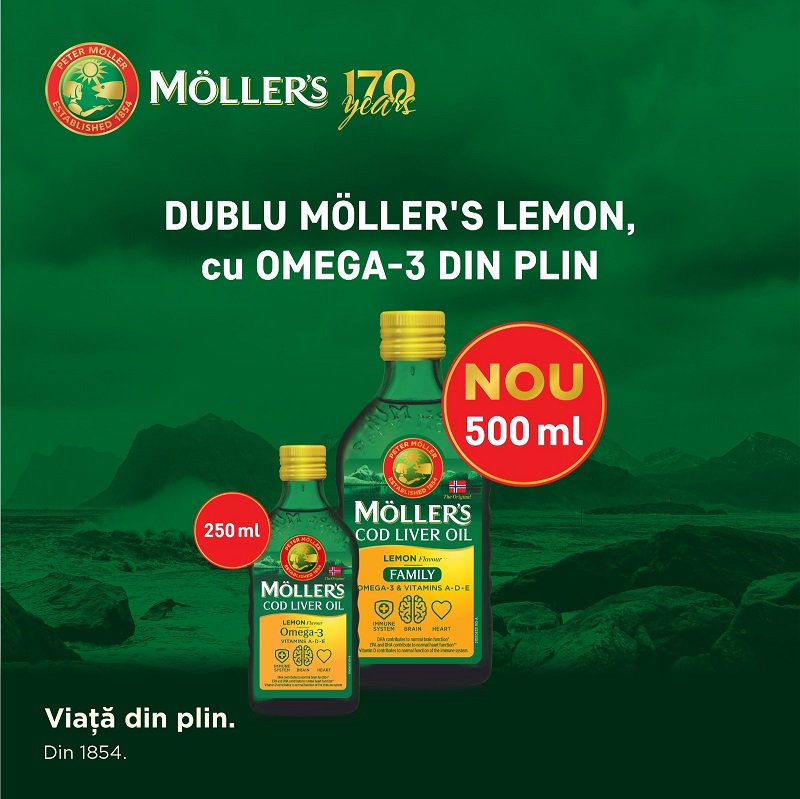 Cu această ocazie, brandul nr. 1 din Norvegia pe segmentul de suplimente alimentare a lansat în România un produs aniversar: Möller's Lemon Flavour FAMILY, 500 ml, care susține sănătatea întregii familii.