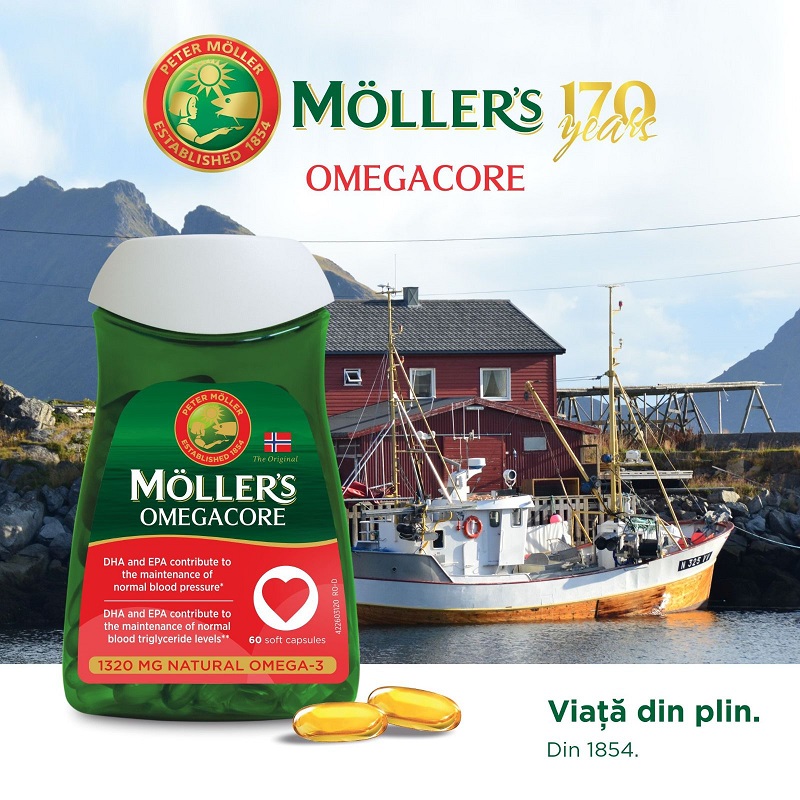 Tot cu ocazia aniversării a 170 ani în lume și a 10 ani pe piața din România, brandul norvegian a relansat sub o nouă imagine produsul Möller's OMEGACORE, capsulele moi ce susțin sănătatea inimii.