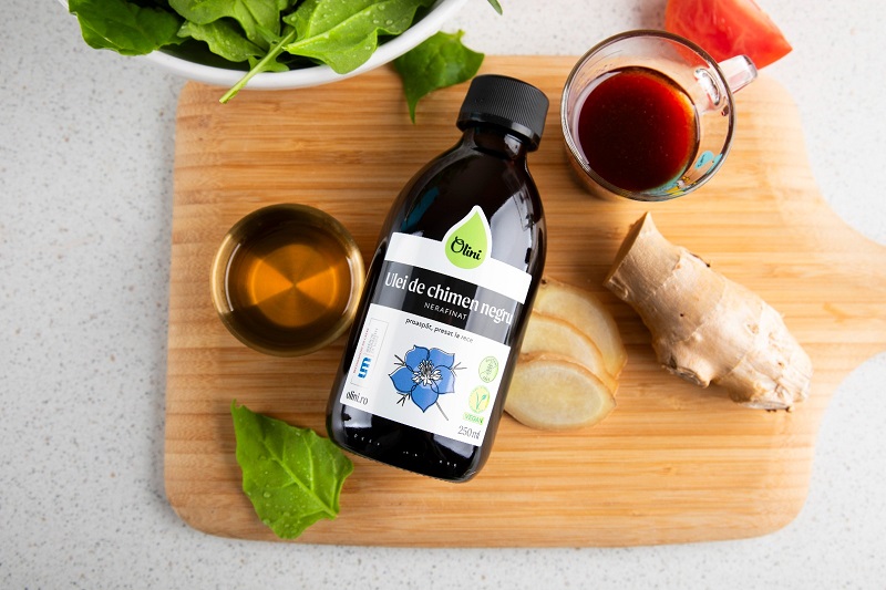Și uleiul de chimen negru, supranumit “aurul faraonilor” oferă un suport natural pentru imunitate. Este bogat în Omega 3 și Omega 6, ajută la menținerea nivelului optim de colesterol în sânge. În plus, are și efect antiinflamator și antialergic. Îl poți pune în salate sau chiar și în iaurtul cu fructe.