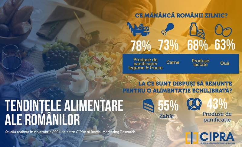 Studiul CIPRA analizează și alte aspecte relevante legate de alimentația la români, precum importanța acordată meselor zilei, consumul zilnic de apă, risipa de alimente, cumpărăturile din impuls și consecințele alimentației nesănătoase, cum sunt problemele cu digestia, irascibilitatea și lipsa de energie.