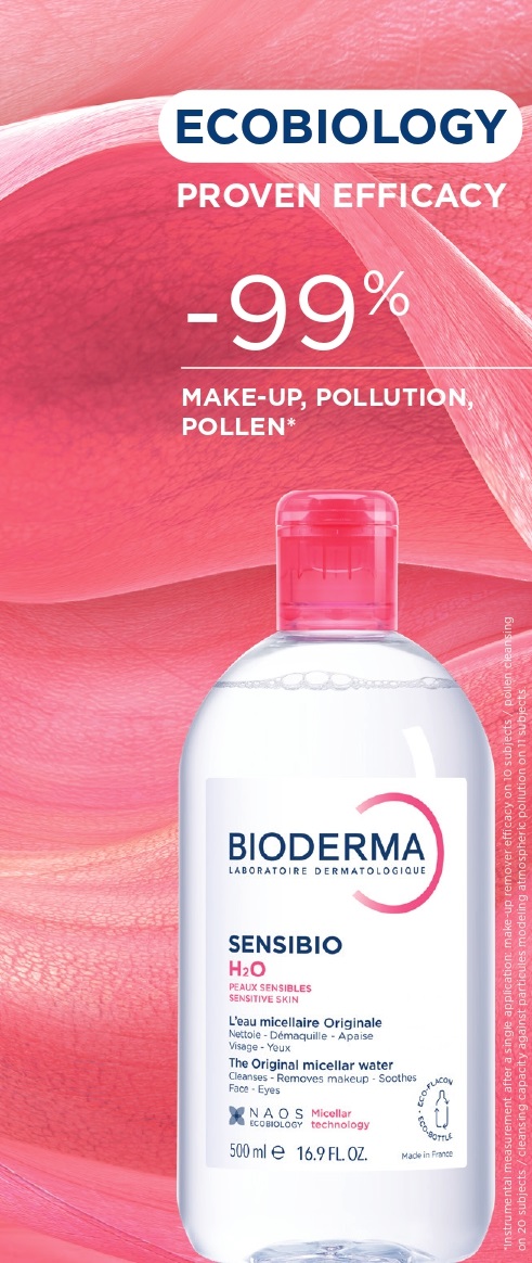 Fiind creată special pentru pielea sensibilă, formula minimală a Sensibio H2O conține doar 10 ingrediente, fără parfum, eliminând eficient impuritățile, machiajul, poluarea și metalele grele, fără a irita pielea. În timp, Bioderma a adaptat tehnologia micelară pentru a acoperi toate tipurile de ten, păstrând însă principiile ecobiologiei: respectarea ecosistemului pielii și protejarea barierei cutanate.