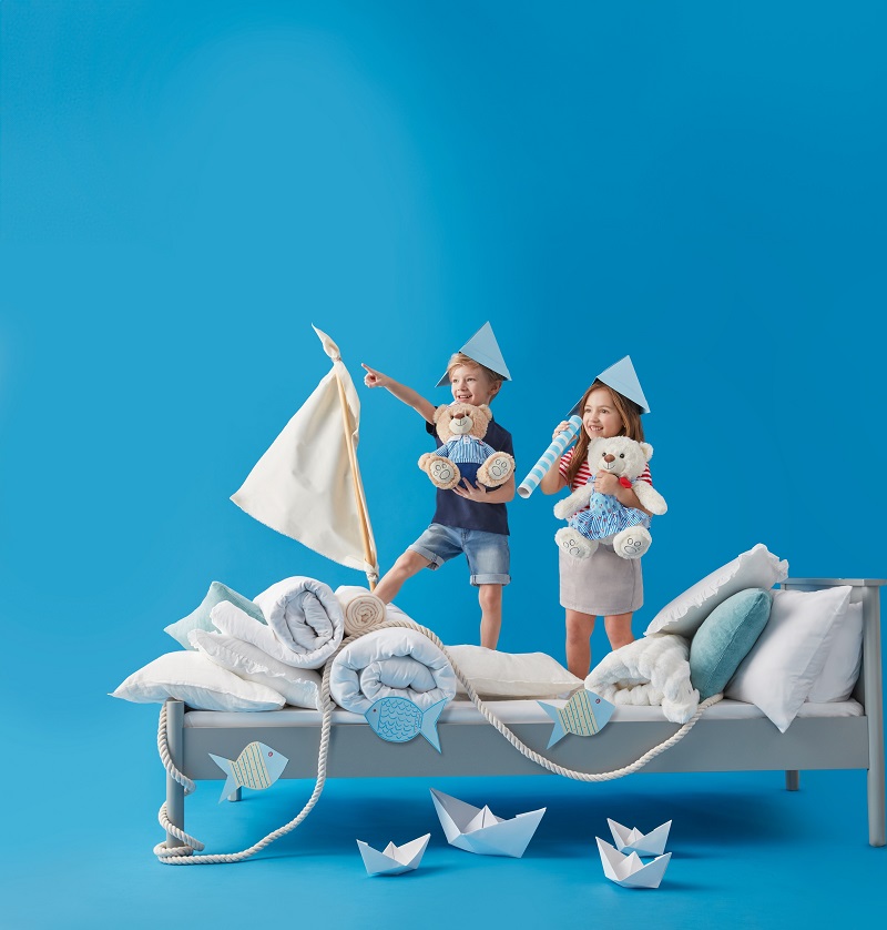 În acest sezon, ursuleții ajung pe rafturi într-un design complet nou, inspirat din universul marin: sunt costumați în rochie sau cămașă în dungi alb-albastre, accesorizate cu detalii precum steluțe de mare și corăbii, care oferă un plus de personalitate noii colecții.