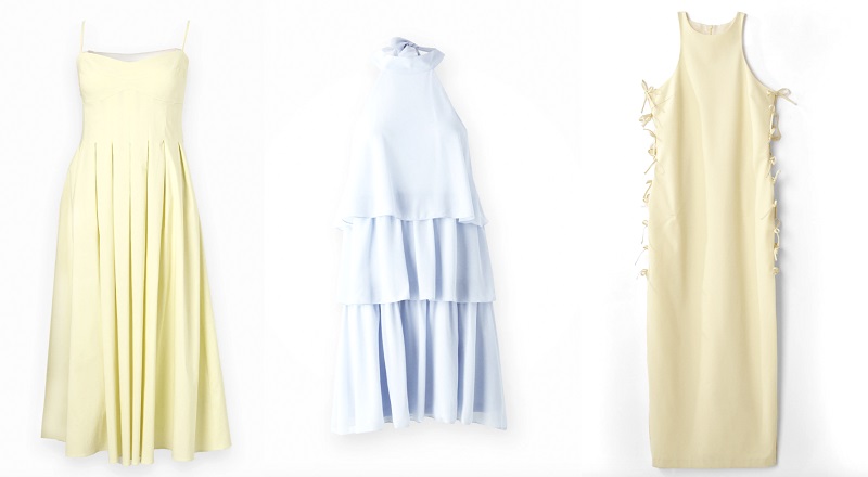 Guess BRIA - Rochie cocktail/Rochie petrecere - pastel lime, 827,00 lei; Gina Tricot FRILL DRESS - Rochie cocktail/Rochie petrecere - light blue, 249,00 lei; Samsøe Samsøe SARIME DRESS - Rochie maxi - flan 1.529,00 lei zalando.ro