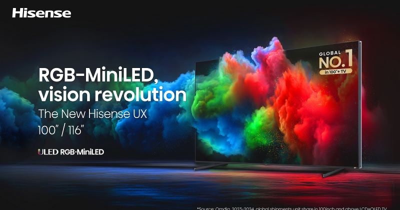 Hisense este primul producător din industrie care a realizat producția de masă pentru televizoarele RGB-MiniLED. Modelul UX utilizează LED-uri Mini individuale în culorile roșu, verde și albastru, nu doar LED-uri monocrome, dispuse pe mii de zone de iluminare locală. Această tehnologie oferă o acoperire cromatică de top în industrie, de până la 95% BT.2020, și o luminozitate maximă de 8.000 de niți, pentru culori bogate, efecte luminoase spectaculoase și tranziții fine.