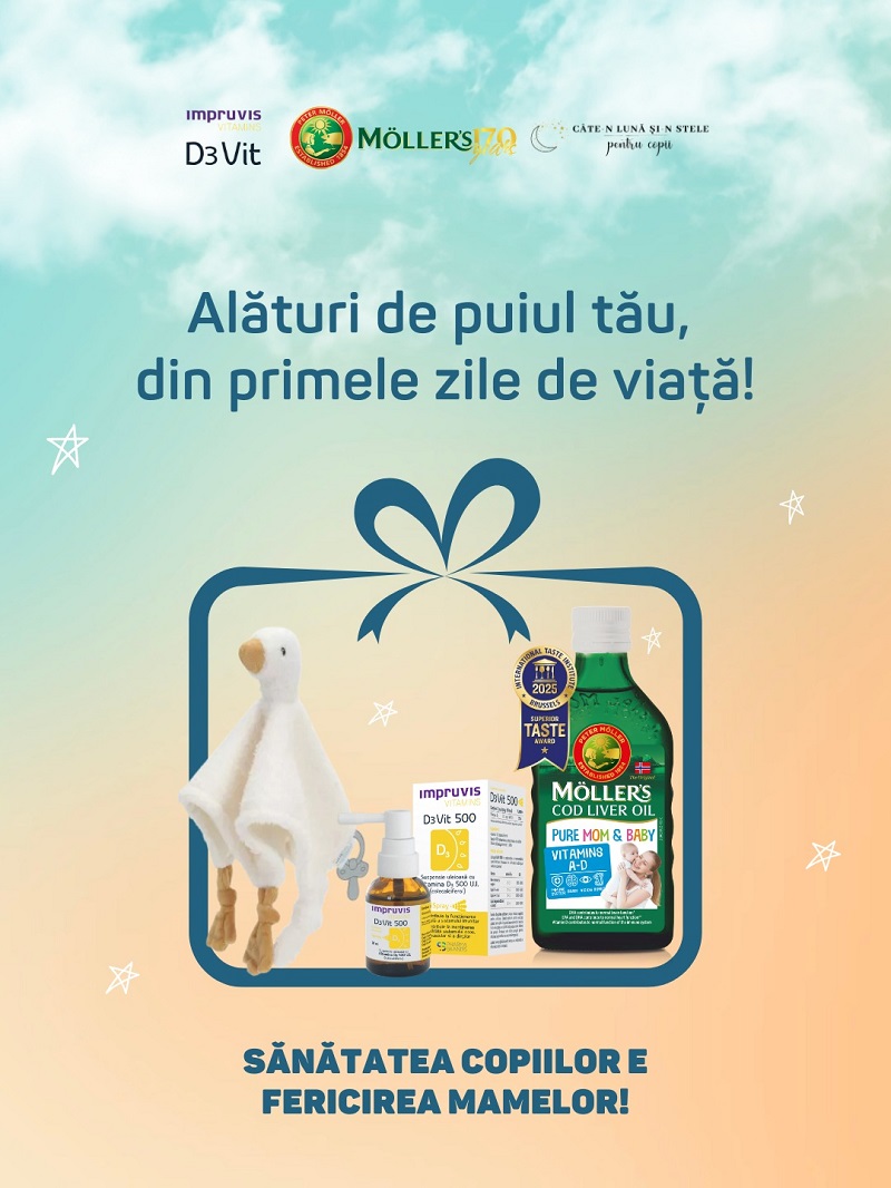 În perioada 21–31 iulie 2025, proaspetele mămici pot beneficia de oferte speciale, gândite cu grijă atât pentru sănătatea lor, cât și a bebelușului: 30% reducere la uleiul de ficat de cod cu Omega-3 Möller’s Pure Mom & Baby, respectiv 15% reducere la Impruvis D3Vit 500 spray. Ofertele sunt valabile la Farmacia TEI și Bebe TEI, atât în locațiile fizice, cât și online.
