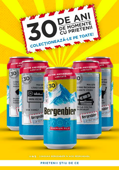 Pentru a marca acest moment, Bergenbier lansează o serie limitată de doze de colecție, de 0,5L, ilustrând momente și simboluri reprezentative din acești 30 de ani.