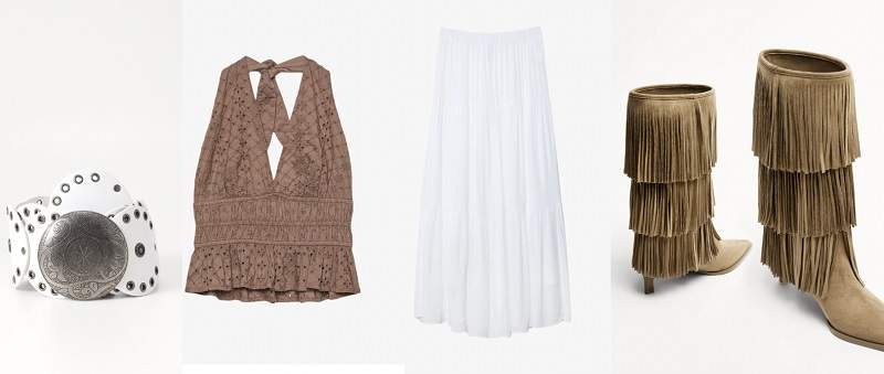 Țesăturile vaporoase și croielile lejere – cum sunt cămășile din bumbac subțire și fustele maxi fluide – se echilibrează perfect cu piese clasice din registrul western, precum cizmele din piele întoarsă și denimul cu margini nefinisate, aducând un aer cowgirl în atmosfera de coastă. Denimul statement scoate look-ul din zona de plajă și îl duce direct spre rodeo.