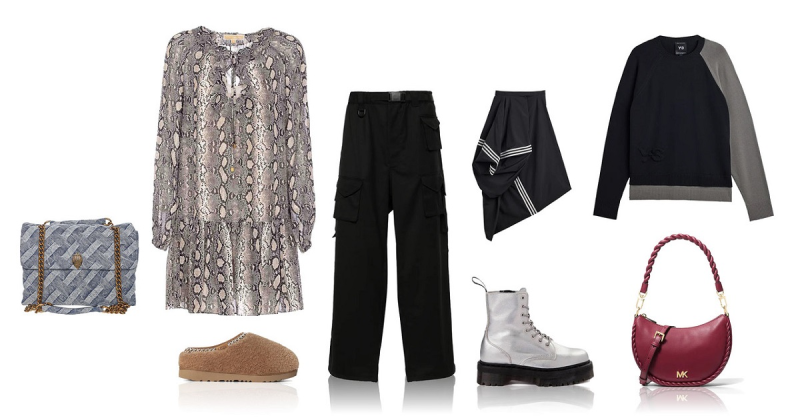 De cealaltă parte, rochia mini cu imprimeu snake de la Michael Kors vine cu acel aer glam care nu are nevoie de nicio prezentare: feminină, fluidă, dar suficient de statement încât să nu ai nevoie de nimic altceva. Pantalonii cargo de la Y-3 duc confortul la nivelul următor – croială relaxată, buzunare mari, aer funcțional, dar cu o linie atât de bine construită încât intră instant în zona de must-have de toamnă. Și ca să nu neglijăm stratul esențial al sezonului, puloverul din tricot, tot de la Y-3, vine cu o textură moale, un logo discret și exact acel echilibru între piesă de bază și accent de look care face diferența.