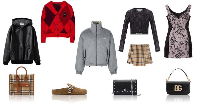 Maison Couture celebrează și arta layering-ului: cardiganul Marc Jacobs, cu imprimeu argyle și inserții de margarete, e un exemplu perfect de playful sophistication, în timp ce fusta mini din lână cu check-ul vintage Burberry rămâne un reper al stilului britanic – atemporală, dar mereu fresh în combinații noi. Întregul tablou este completat de accentele neașteptate: saboții Burberry, cu platformă și detalii îndrăznețe, introduc un twist urban într-o garderobă altfel clasică.