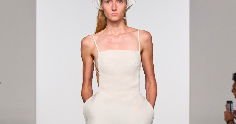 Lenjeria intimă devine protagonistă, influența sa apărând în variații ale topului tip camisole și slipului, accente de dantelă și curele pentru ochelari, apoi explodând într-o rochie din tweed fără cusături, țesută cu logoul iconic al mărcii pe talie.
