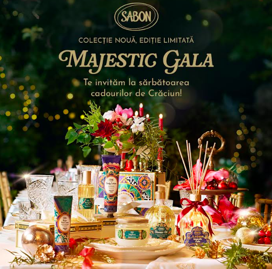 În acest sezon de sărbători, permite ca două produse de îngrijire corporală SABON să te transpună în atmosfera unui banchet regal încântător, prin magia parfumului Majestic Gala în ediție limitată.