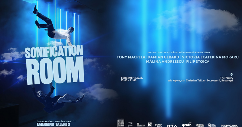 Performance-ul reflectă parcursul artistic al celor cinci artiști, Tony Macpela, Damian Gerard, Victoria Ecaterina Moraru, Mălina Andreescu și Filip Stoica, parte din Transcendent Renaissance – Emerging Talents. Proiectul a pornit de la invitația artistului Călin Țopa de a participa în cadrul World Stage Design 2025, creând o oportunitate pentru tinerii creatori multidisciplinari, interesați de artele performative, regie artistică, scenografie, new media, sound și lighting design, să se afirme și să se conecteze cu rețele artistice internaționale. Cei cinci artiști selectați au participat astfel la rezistența internațională de opt zile la WSD 2025, în Sharjah, Emiratele Arabe Unite, dar și la ateliere de producție în București, coordonate de Călin Țopa și echipa lui, alături de Asociația IOTA. Experiențele acumulate s-au concretizat în acest performance colectiv, „Sonification Room”, care aduce în prim-plan creativitatea și colaborarea tinerilor artiști.